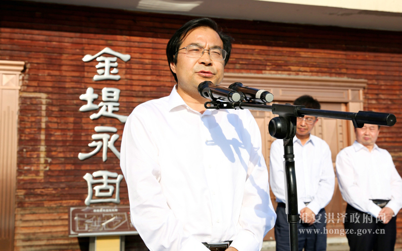 朱亚文在致辞中说,近年来,洪泽始终坚持党要管党、从严治党,全面落实党风廉政建设“两个责任”,严明纪律,严纠“四风”,严惩腐败,党风廉政建设和反腐败工作取得显著成效,为经济社会发展提供了坚强保障。特别是“金堤永固”勤廉教育基地,与世界文化遗产洪泽湖大堤相结合,融合了洪泽湖历史文化、治水文化、旅游文化、勤廉文化,集知识性、欣赏性、警示性、教育性于一体,充分发挥了其在党性党纪教育、反腐倡廉教育、勤廉道德教育和廉政文化建设中的积极作用,得到省、市领导的充分肯定,受到了干部群众的广泛好评。